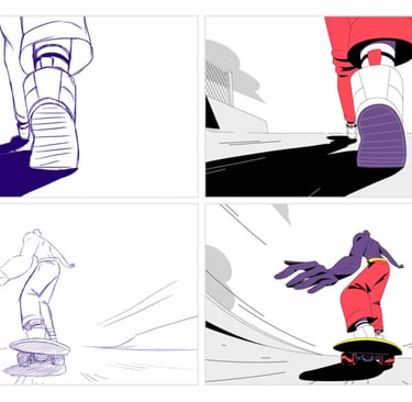 Our 2D animators used traditional hand-drawn animation techniques, similar to the early Walt Disney cartoons, but with a modern twist. Instead of using paper, we worked digitally on large-format graphic tablets, which allowed us to speed up the process while maintaining the attention to detail that is critical in frame by frame animation. By leveraging advanced animation software, we brought each scene to life with precision, illustrating the excitement and energy of skateboarding.