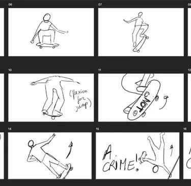 To fully capture the excitement of skateboarding, our team developed an animatic, which is a simplified version of the final animated film. The animatic helped us fine-tune the timing and movements of each scene before diving into the detailed process of rough animation. This step was essential in achieving the dynamic tricks performed by skaters, ensuring smooth transitions and a consistent flow throughout the 2D animation.