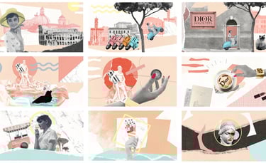 Dior reached out to us to create a 45-second playful mixed-media social video, a vibrant collage-style piece, bringing to life a summer vibe inspired by La Dolce Vita, connecting their fragrance, makeup, and skincare lines.