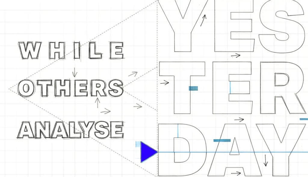 The kinetic typography style we developed features fragmented letterforms that reassemble in real-time, split-screen text compositions that mirror data splits and aggregations, and velocity variations that reflect market volatility. This approach transforms abstract fintech concepts into visceral visual experiences, making complex predictive analytics feel immediate and tangible. The typography breathes with the rhythm of financial markets, accelerating during moments of insight, pausing for emphasis on key metrics, and building momentum toward strategic conclusions.