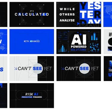For R15K AI, a fintech company specializing in AI-driven risk capital monitoring, we created a high-intensity kinetic typography video, as the primary narrative vehicle with letterforms that fragment, calculate, and reassemble in real-time